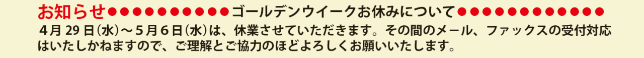 4月29日(水)~5月6日(水)は休業させていただきます。